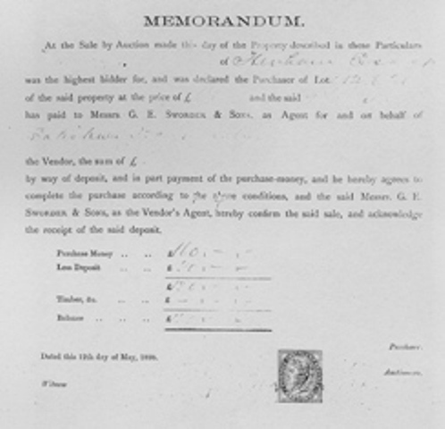 Lot 18 – 2 modern freehold dwelling houses, timber-built and tiled, with stucco fronts, one containing 3 bedrooms, parlour, kitchen, and WC, small yards and gardens, with detached coal houses, in the respective occupations of Messrs. G. Coy and John Glasse, at rents amounting together to £15 12s. perannum, the Landlord paying Rates. The fence dividing this Lot from Lot 14 will be sold with this Lot. Sold for £175 to Shepherds. Now known as ‘Viola Cottage’ and ‘White Pine’.