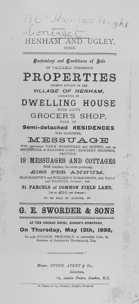 The Auction of Properties and Lands in Henham and Ugley