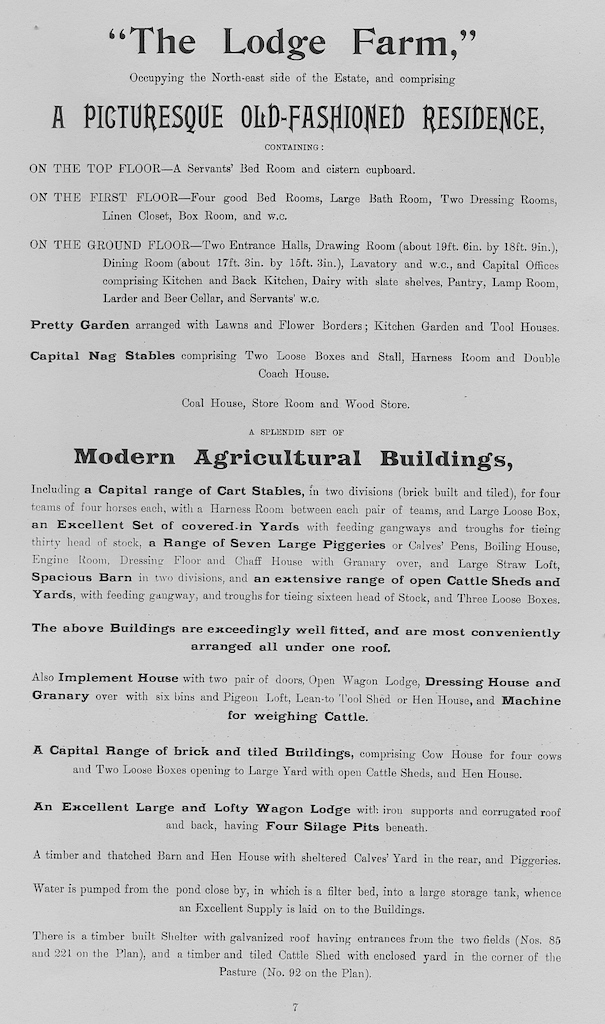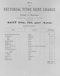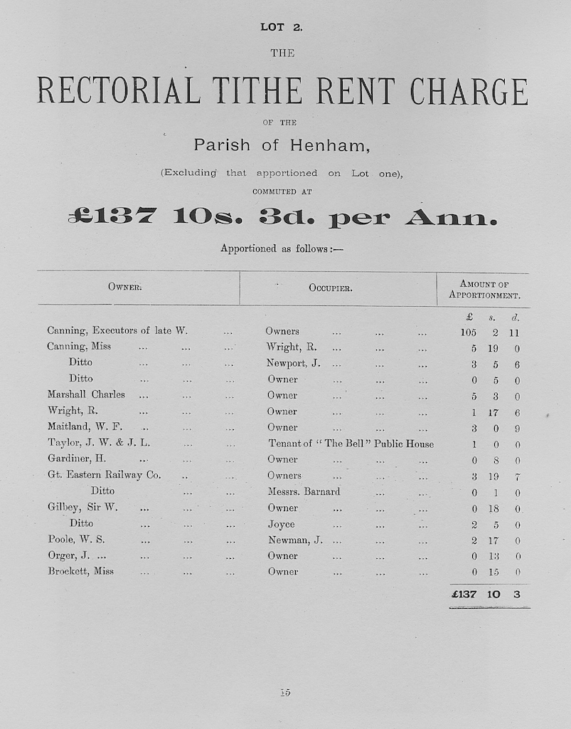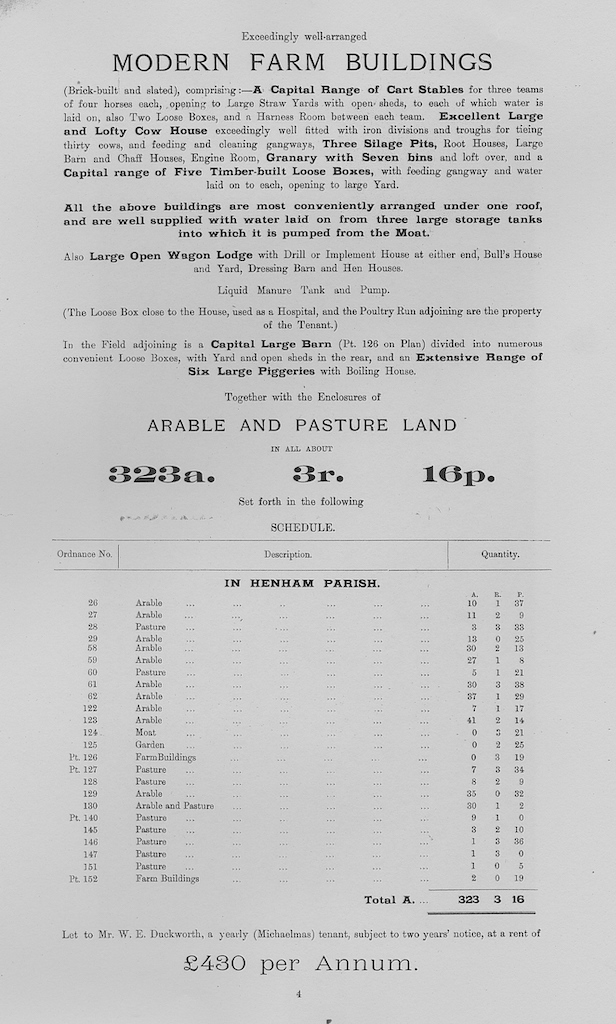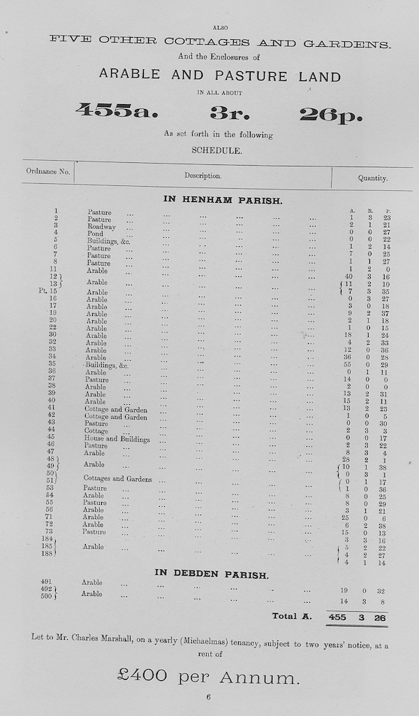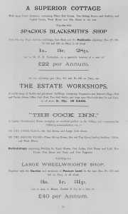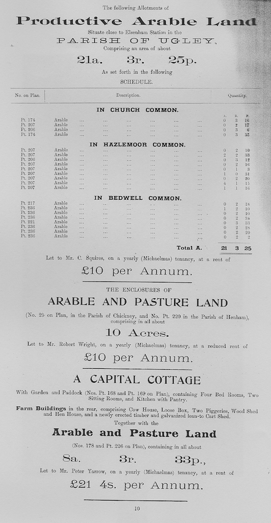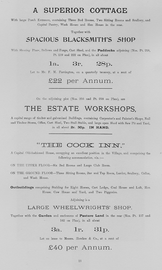 The following information is taken from a sale catalogue in Miss Joyce Winmill’s Collection. This auction included Parsonage Farm, Cock Public House, Little Henham Hall, Brayshott’s Farm, Jock’s Farm, Lodge Farm & Green End Farm.