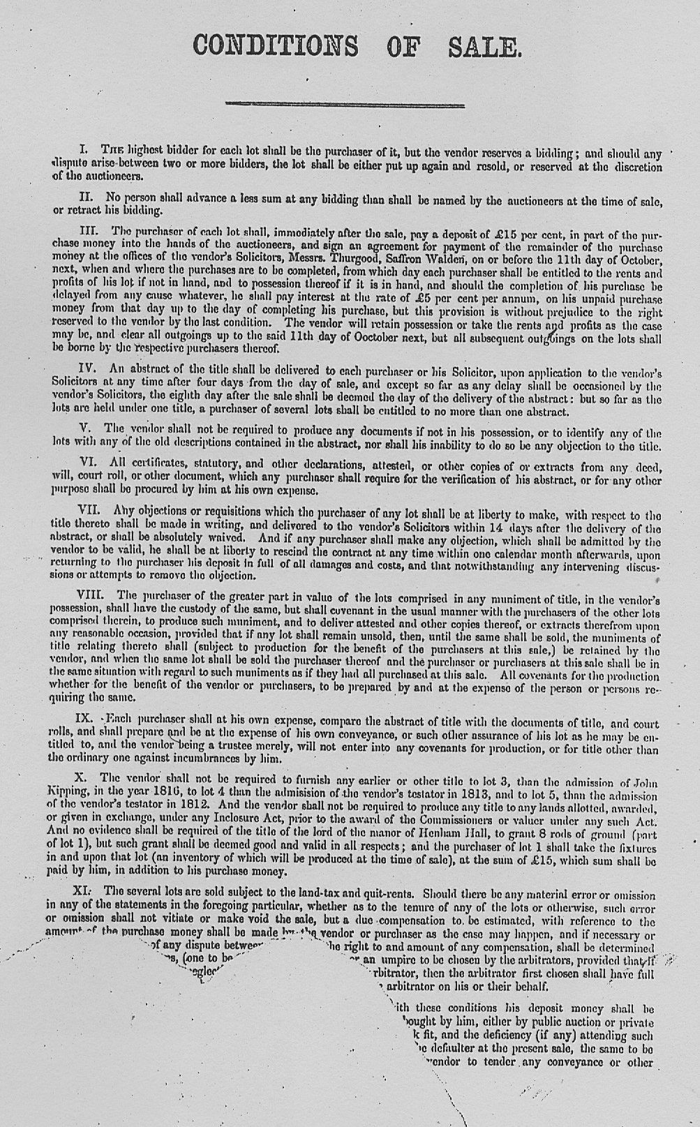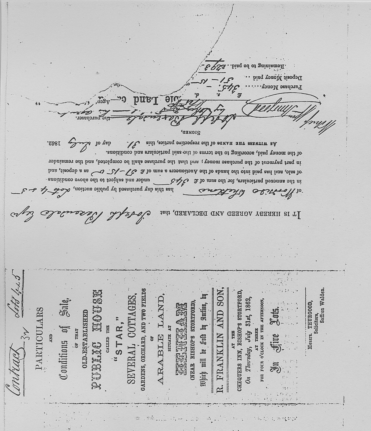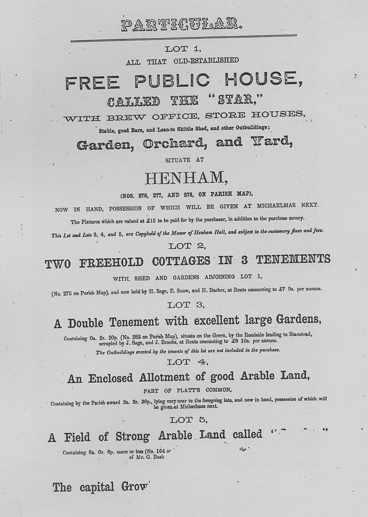 Lot 2 was held by H. Sage, E. Snow, and H. Barker; Lots 4 and 5 (possibly occupied by Mr. G. Bush) were purchased at the auction by Joseph Baxendale