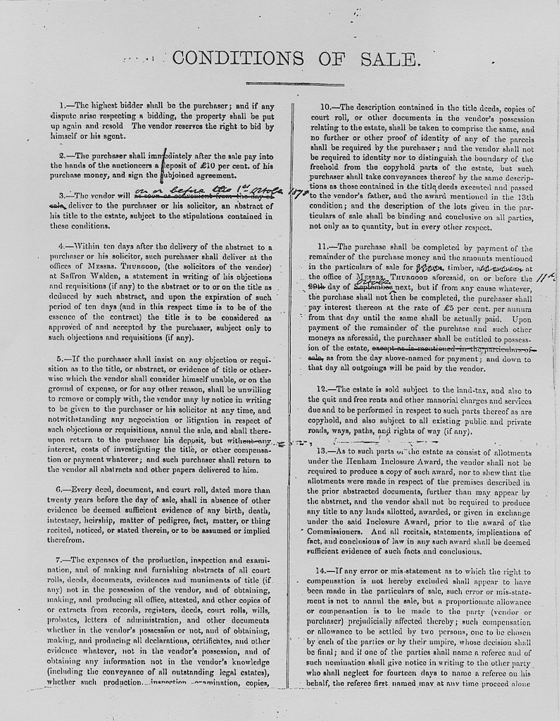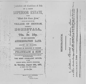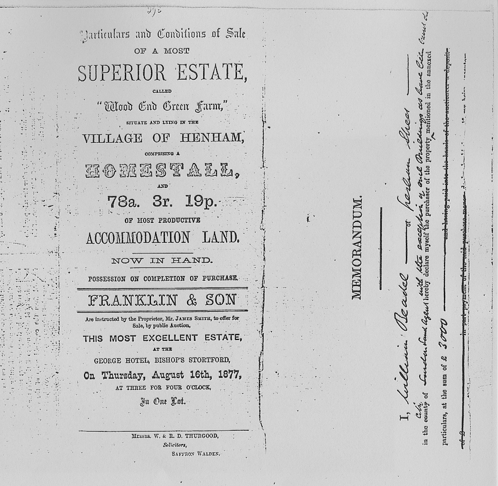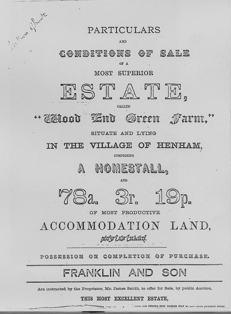 This information has been taken from a sale catalogue in the Baxendale papers of Miss Winmill’s collection. This auction was by the direction of Mr. James Smith, proprietor.