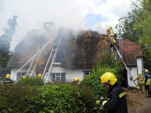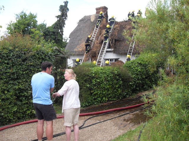 | 1st July 2011. Bury Cottage, on fire due to an electrical fault. Although part of our daily history, this has been the only time I've hesitated adding a village photograph. It's terrible to witness, worse it's distressing for the family and those, such as Michael Cornell, who can still recall their childhood in this cottage. |