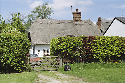| Glebeside Cottage, CARTER'S LANE - C17-C18 timber-framed and plastered cottage. One storey and attics. Small casement windows, some with leaded lights. Roof thatched, with 3 dormers and a central chimney stack. | ![]() |