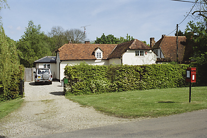 | The White Cottage LITTLE HENHAM,C17 timber-framed and plastered cottage with a modern later wing added at the rear. Renovated C20. One storey and attics. Casement windows. Roof thatched, with 2 dormers on the north-west front (one gabled) and one dormer at the rear. | ![]() |