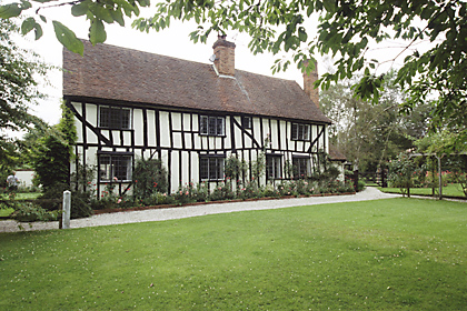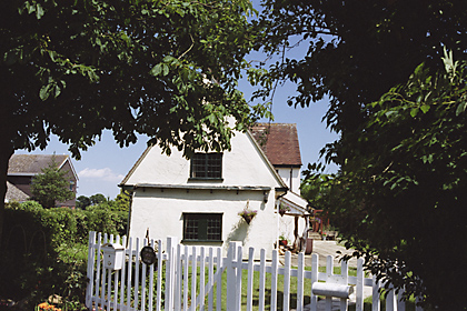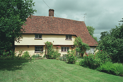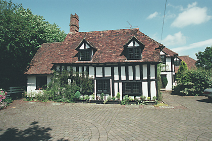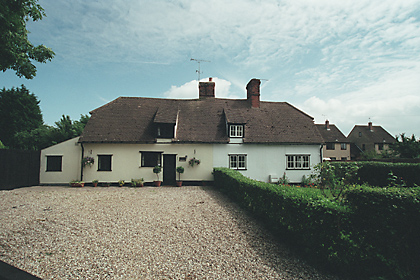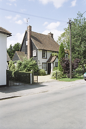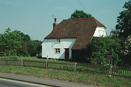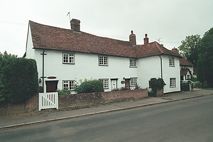 | Elm Cottage, PLEDGDON GREEN - C18 timber-framed and plastered cottage. One storey and attics. Casement windows. Roof tiled, half hipped, with one gabled dormer window. | ![]() |