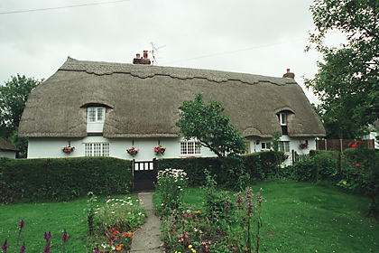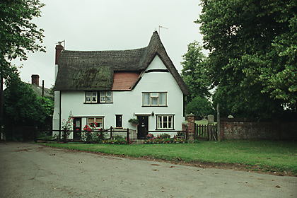 | Little Acre, CHURCH END - C17 timber-framed and plastered house with a cross wing at the south end. Renovated in the C20. Two storeys and attics. Small casement windows with lattice leaded lights (C20). A modern gabled porch projects on the front. Roof thatched, with one dormer window on the front. | ![]() |