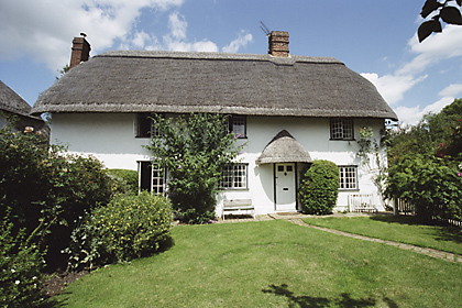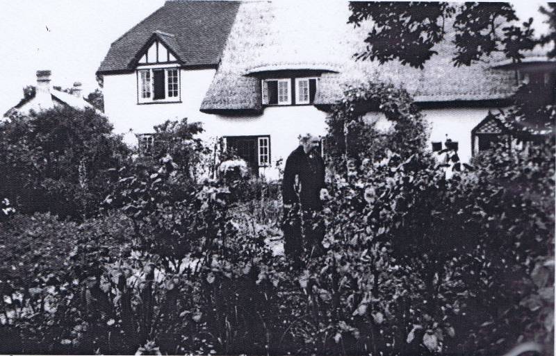 | Thatch End, THE ROW - Originally a C15 timber-framed and plastered hall house with a solar wing at the east end. A fireplace and floor was inserted in the C17. Renovated. Casement windows. Roof thatched, with one dormer on the front. At a later date "Thatch End" was joined to "Dolls Cottage" by an infil bay between the main blocks. | ![]() |