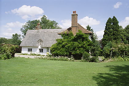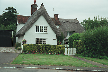 | Datchet Mead, High Street - C18-C19 timber-framed and plastered cottage. Renovated in the C20. One storey and attics. Casement windows. Roof thatched, half hipped, with a modern central swept dormer window, and a central chimney stack. | ![]() |