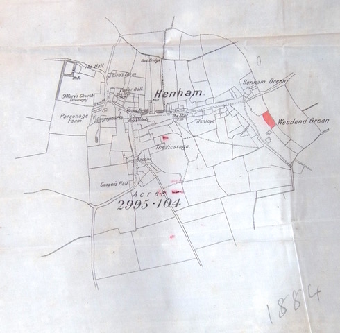 Prompt Corner 30 – Oct. 1866. The Manor of Henham Hall. All that land late in the occupation of James Bush and were then in the occupation of George Bush. And also all that cottage or tenement with the garden and appurtenances thereto belonging also situate at Henham aforesaid and then in the occupation of William Brand ….