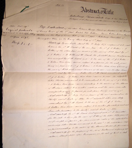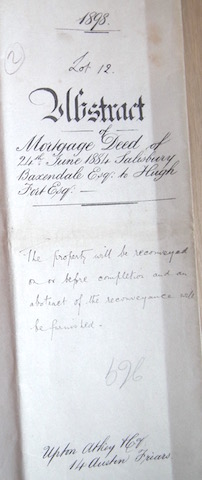 Prompt Corner 03 – Lot 12. Abstract of Mortgage Deed of 24th June 1884 Salisbury Baxendale to Hugh Fort, Esquire
