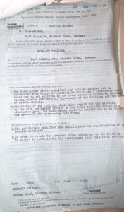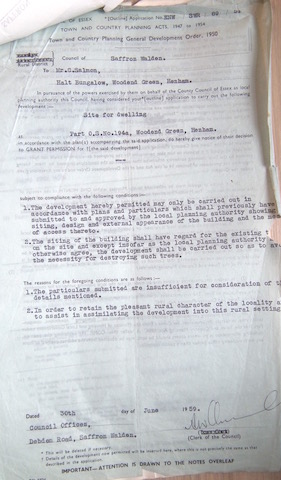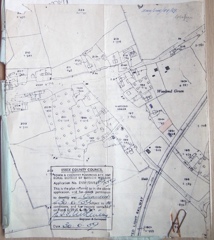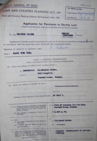 Prompt Corner 06 – Application for Permission to Develop Land (a disused garden, part of Ordnance Plot 194a 6,000 square feet to be developed as a private dwelling. Dated April 10th 1959 by Mr. Charles Salmon of Halt Bungalow, Woodend Green