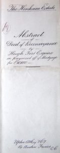 Prompt Corner 07 – The Henham Estate. Title page of Abstract of Deed of Reconveyance by Hugh Fort Esquire on payment off of mortgage for £10,000.