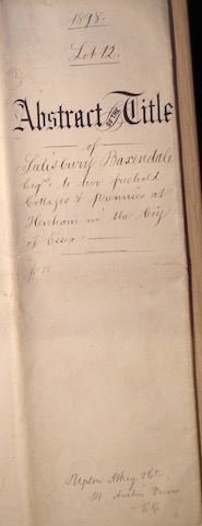 Prompt Corner 09 – 1898 Lot 12. Abstract of the Title of Salisbury Baxendale Esquire to two freehold cottages and premises at Henham in the County of Essex.