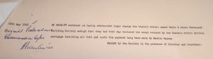 Prompt Corner 42 – in continuation of PC 41 – The Herts & Essex Permanent Building Society that on the 20th May 1949 they received a sum of money (£100 at a monthly rate, including interest, of 16s 3d.) from Martin Baynes, labourer.