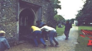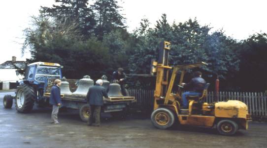 A set of previously unrung changes was identified and six of us met on Monday 3rd February 2014 to attempt a quarter peal in the new method. Ringing is full of rules and one of them says that you can only name a new method if you have rung a certain number of changes in it. On six bells there are 720 possible changes and you must ring them all to name the method. We chose to ring a quarter peel of 1320 changes which came round successfully in 43 minutes. We are delighted to name the new method Henham Surprise Minor.The picture is the return of the bells in October 1985 after repair.