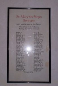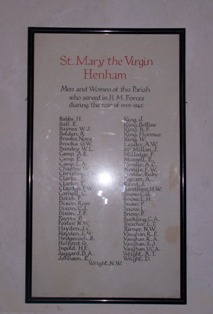 In the church there is a church plaque dedicated to the men and women who served with H.M Forces during World War II.